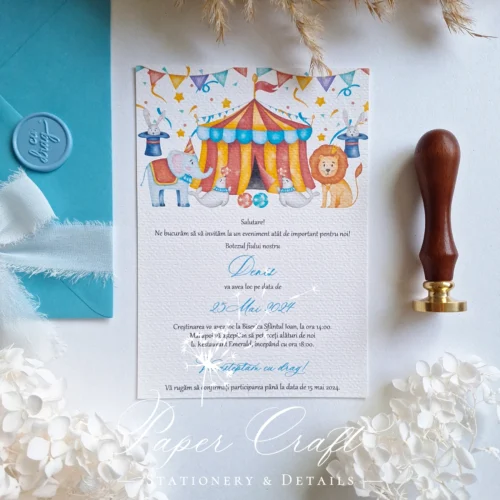 Pregătește-te să navighezi către o aventură captivantă pe mări și oceane cu invitația noastră de botez în tematica „Nautical” dedicată micuțului tău căpitan!