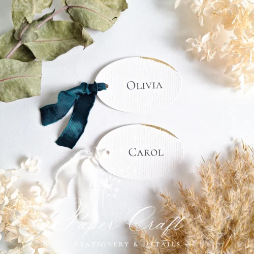 1,50 lei – 2,00 leiInterval de prețuri: 1,50 lei până la 2,00 leiPlace card - Oval + Panglică + Fulgi Aurii