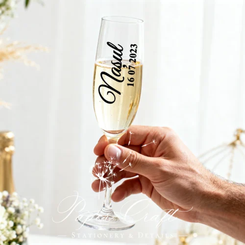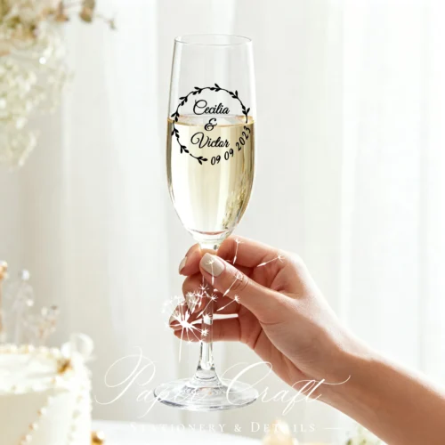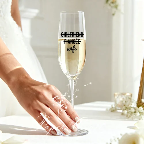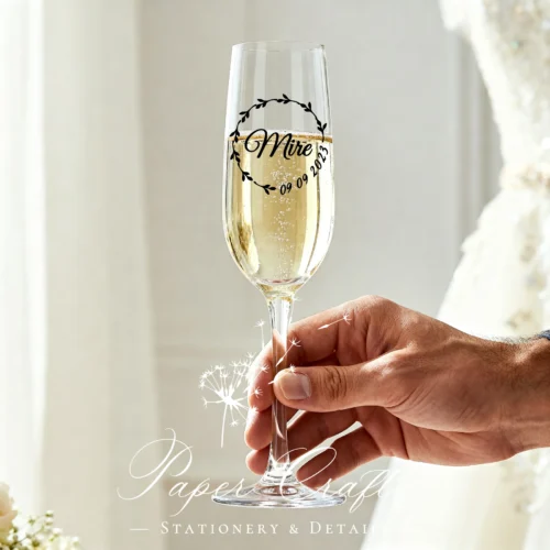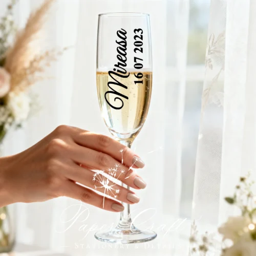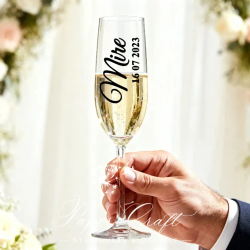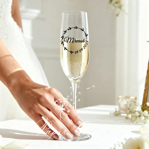 Sticker personalizat pentru pahar „Mireasă + Data”