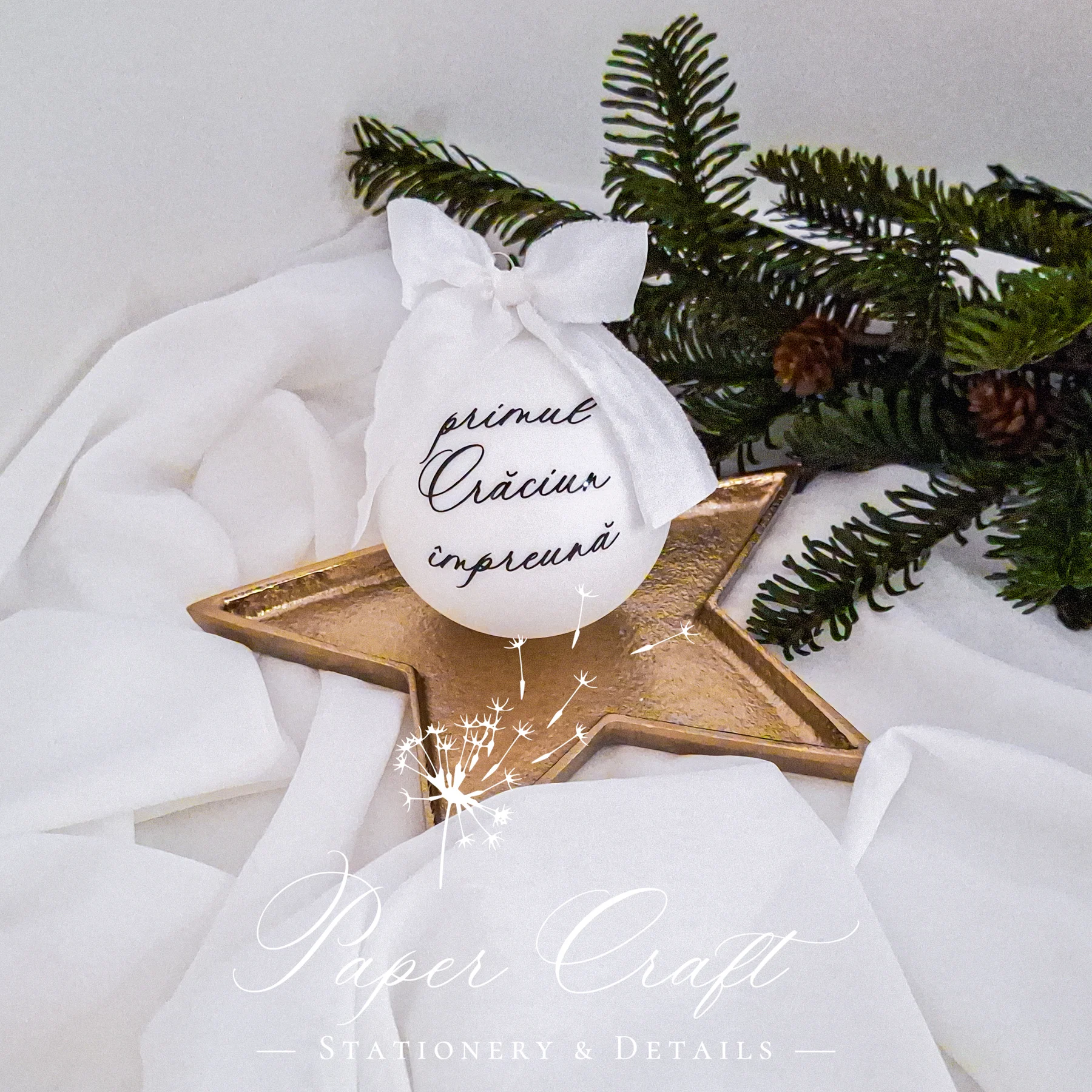 Adaugă emoție și strălucire bradului cu globul „Primul Crăciun împreună”, o amintire delicată a unui moment unic în viață. Realizat din sticlă vopsită alb mat și personalizat manual, globul surprinde frumusețea primului Crăciun petrecut alături de persoana iubită, marcând un capitol special din povestea voastră.