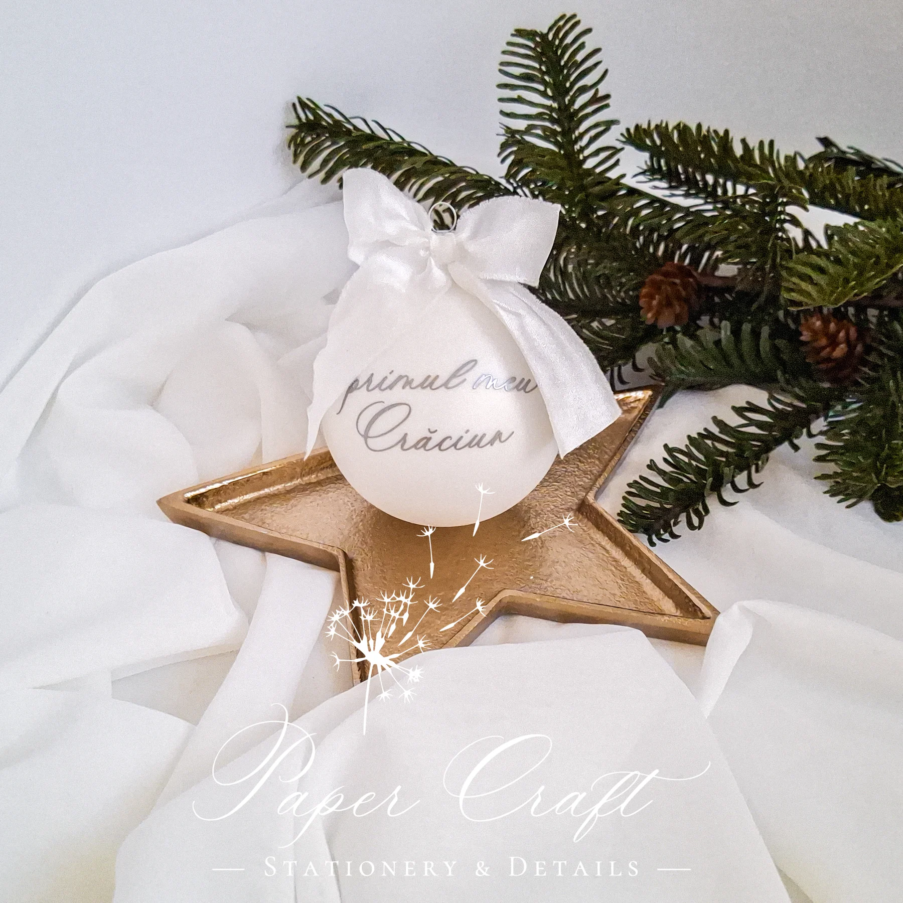 Adaugă o emoție unică în decorul tău de sărbători cu globul de Crăciun „Primul meu Crăciun”, realizat manual din sticlă vopsită alb mat și personalizat cu un mesaj delicat, perfect pentru a marca acest moment special din viața unui bebeluș. Este o amintire prețioasă care va rămâne ani la rând în familie.