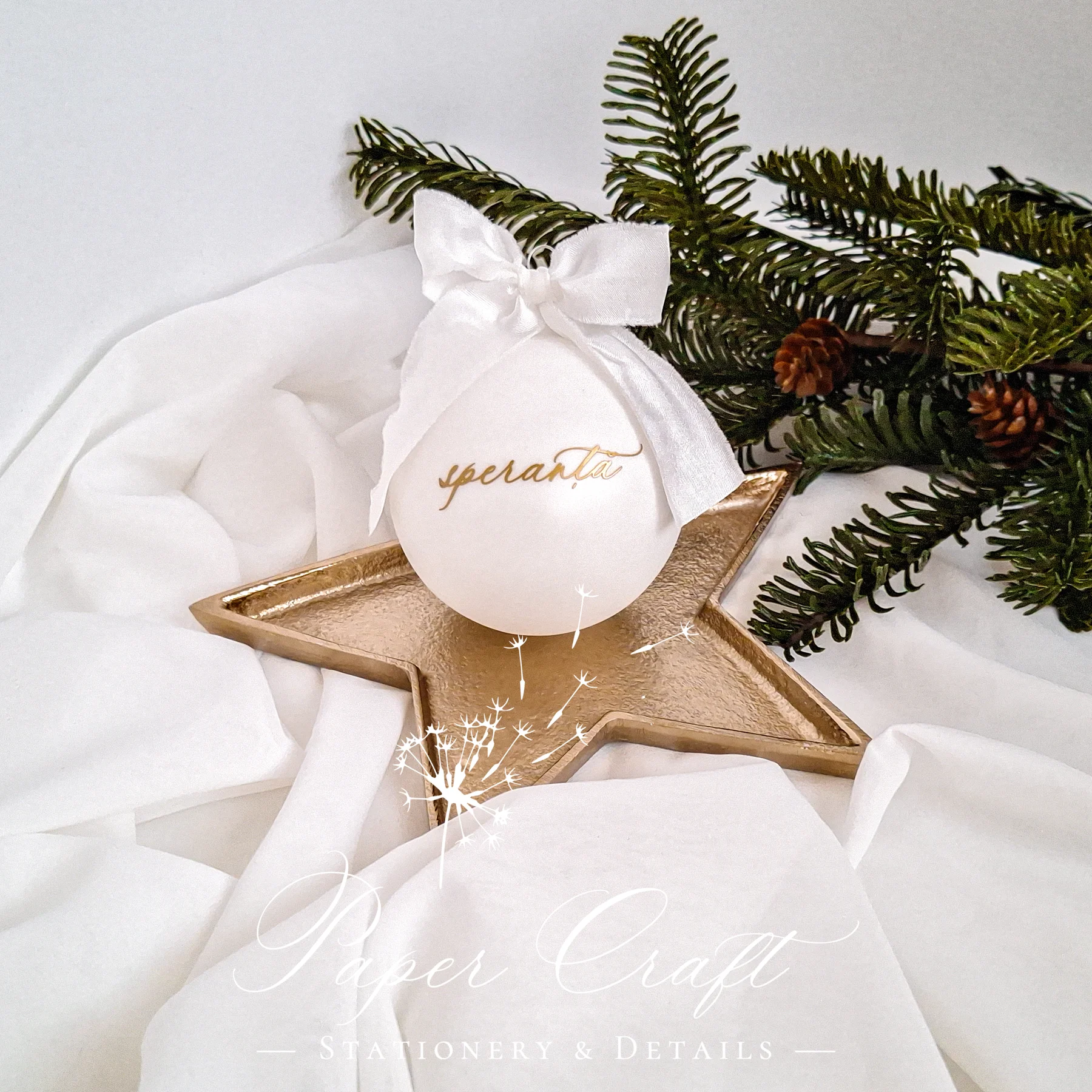 Adaugă un strop de lumină și optimism în decorul tău de sărbători cu globul de Crăciun „Speranță”, realizat din sticlă vopsită alb mat și personalizat cu grijă pentru a transmite emoție și liniște. Creat manual, unul câte unul, acest glob devine nu doar o decorațiune, ci un mic mesaj simbolic, perfect pentru bradul de Crăciun.