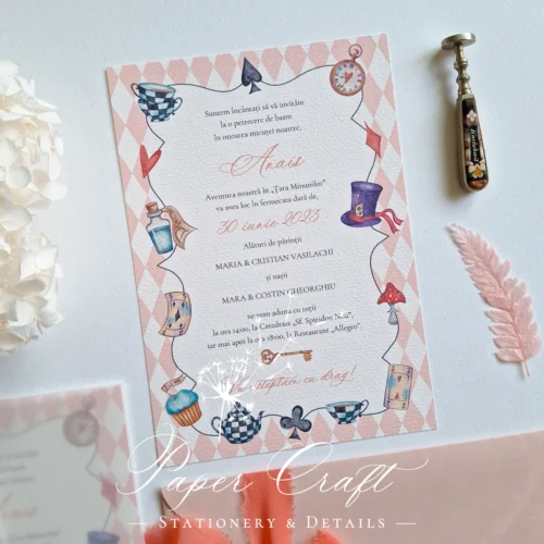 Textul invitației se transmite de către client, în forma finală, pe adresa de mail sau WhatsApp. În cazul în care textul nu conține diacritice, acestea pot fi adăugate de noi, tariful pentru acest serviciu fiind de 50 RON.
