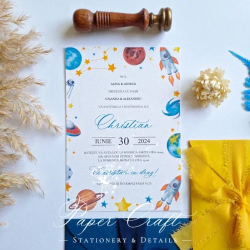 Textul invitației se transmite de către client, în forma finală, pe adresa de mail sau WhatsApp. În cazul în care textul nu conține diacritice, acestea pot fi adăugate de noi, tariful pentru acest serviciu fiind de 50 RON.