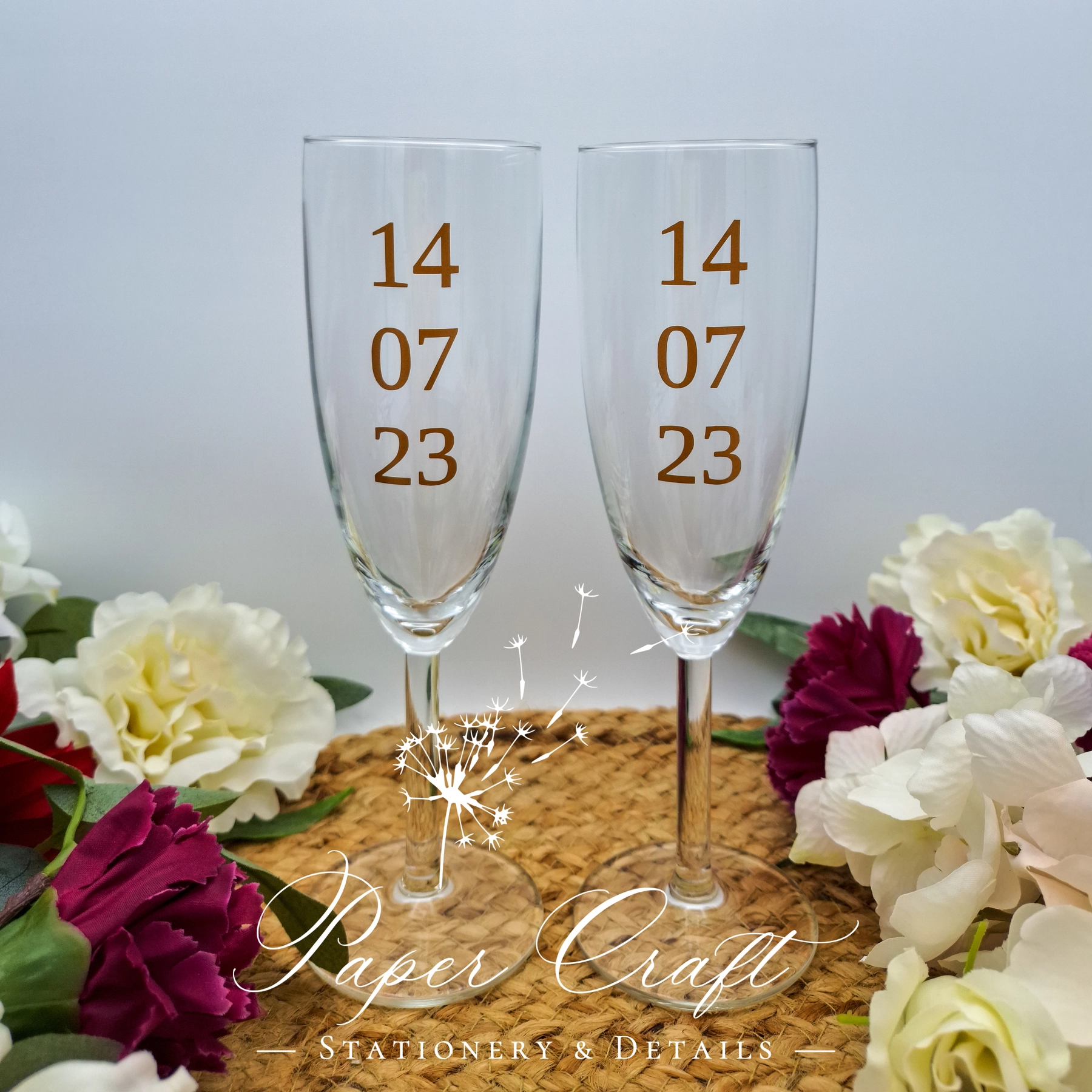 Paharele personalizate pentru nuntă sunt accesorii elegante, create special pentru a celebra momentul tău unic. Prin adăugarea de detalii personalizate precum numele mirilor, numele nașilor, data evenimentului și nu numai, ele capătă un farmec deosebit și devin o amintire memorabilă a evenimentului tău.