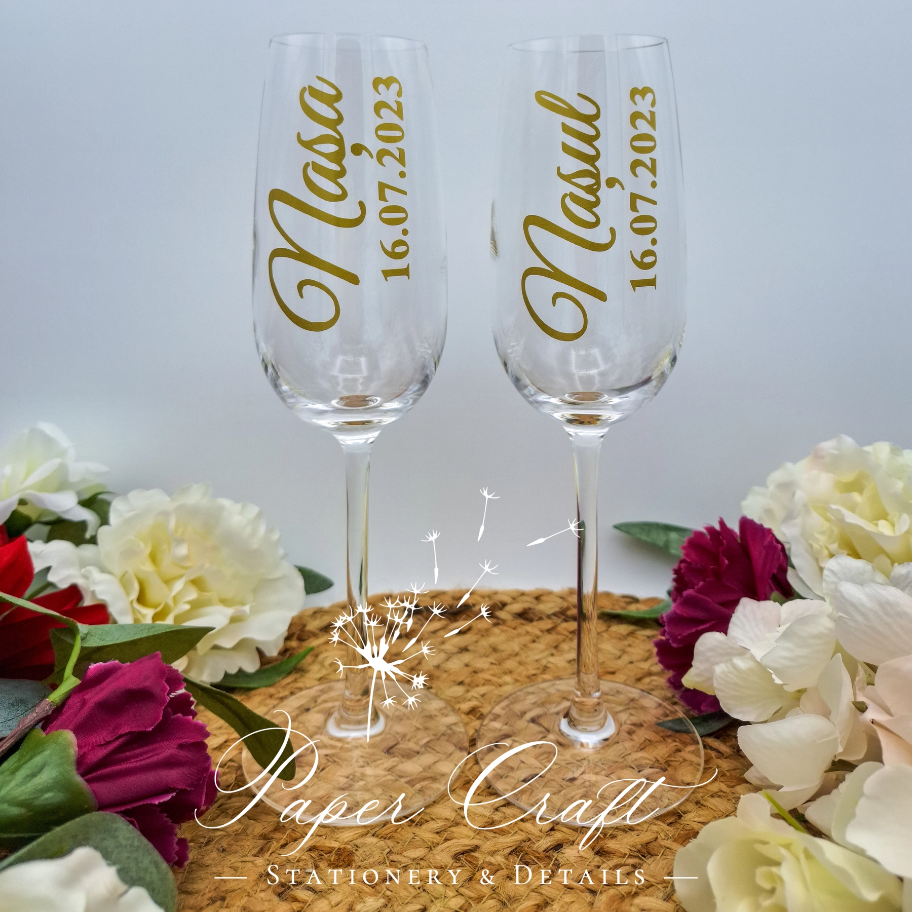 Paharele personalizate pentru nuntă sunt accesorii elegante, create special pentru a celebra momentul tău unic. Prin adăugarea de detalii personalizate precum numele mirilor, numele nașilor, data evenimentului și nu numai, ele capătă un farmec deosebit și devin o amintire memorabilă a evenimentului tău.