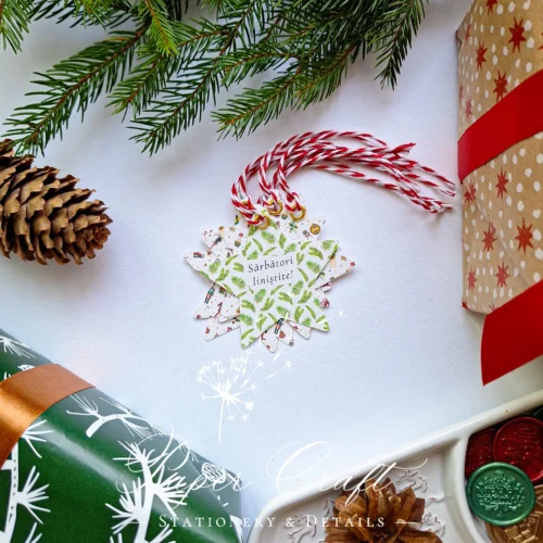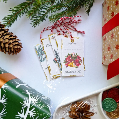 Fiecare tag/etichetă conține șnur colorat și inel auriu