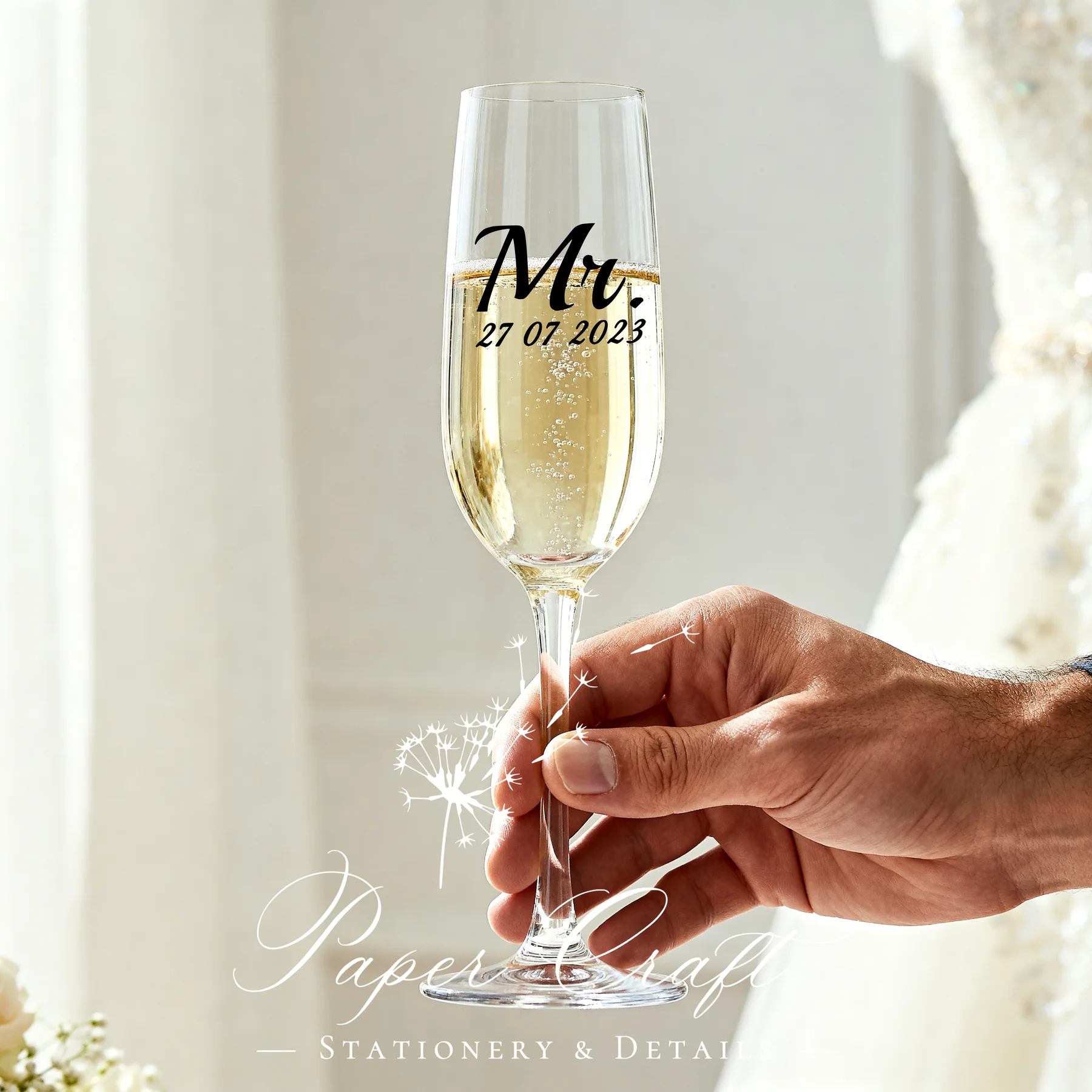 Stickerul personalizat pentru pahar „Mr. + Data” marchează într-un mod elegant un moment special din ziua nunții, printr-o personalizare discretă și rafinată. Ideal pentru paharele mirilor, nașilor sau ale persoanelor apropiate, acesta completează armonios atmosfera evenimentului.