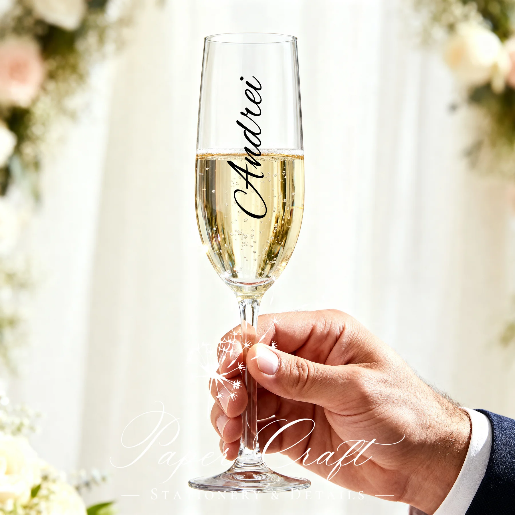 Stickerul personalizat pentru pahar cu nume sau inițiale este ideal pentru personalizarea paharelor mirilor, nașilor sau persoanelor apropiate în cadrul nunții. Realizat la comandă, fiecare sticker este adaptat conform textului ales, oferind un detaliu elegant și armonios decorului evenimentului.